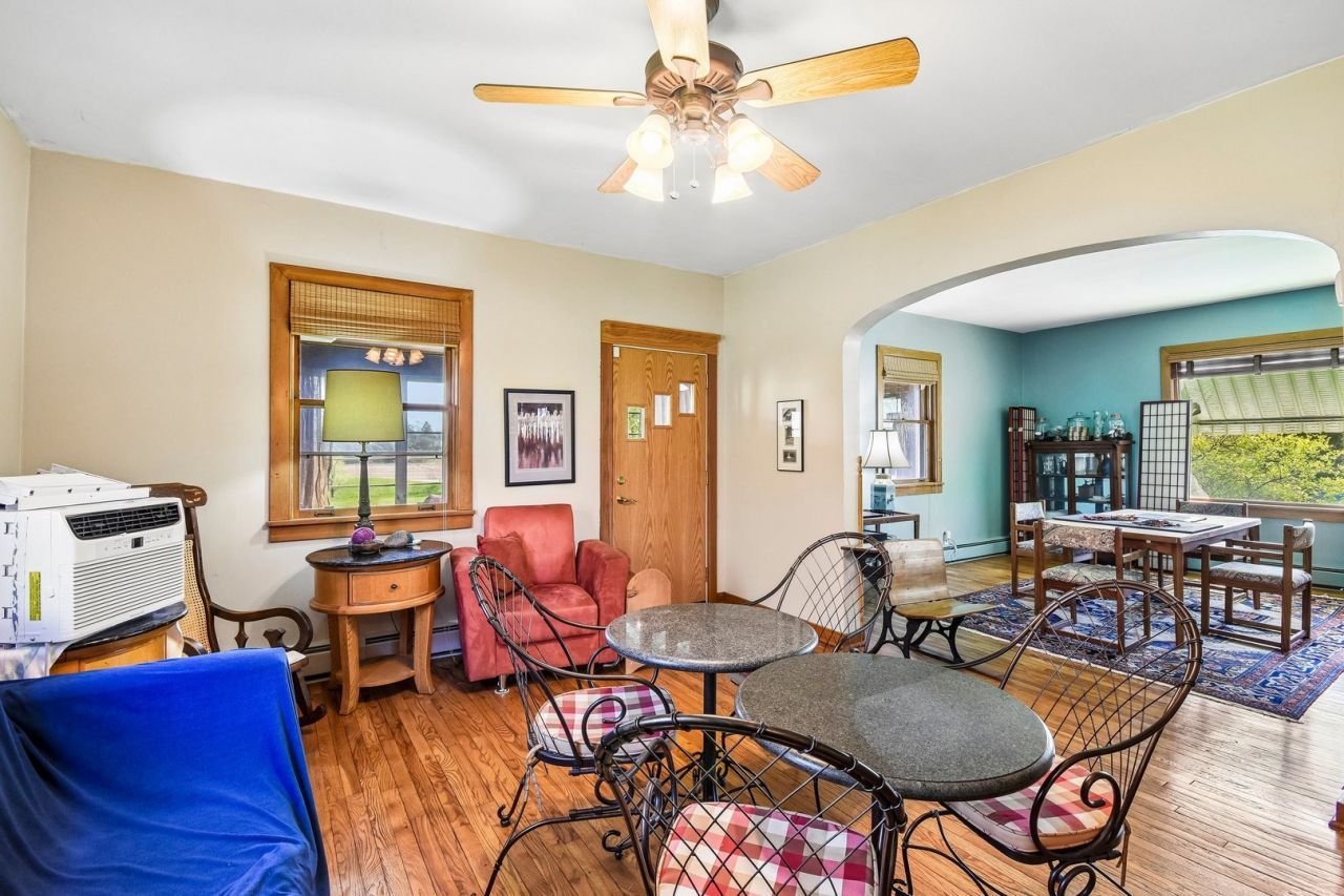 Escape the city without sacrificing convenience in this charming 3 bed, 2 bath farmhouse set on 2.64 picturesque acres. Surrounded by mature trees and open skies, this property offers the perfect blend of peaceful rural living and everyday accessibility - just 30 minutes south of Lake Geneva and close to shopping & dining. Step inside to find a functional layout featuring a spacious living room, separate dining room, and a kitchen complete with a pantry. The main level also includes a large laundry room with sink and extra storage, a dedicated office, and a full bath with walk-in shower. An enclosed three-season room provides the perfect spot to relax and take in the surrounding landscape. Upstairs, you'll find three comfortable bedrooms and a shared hall bath, while the dry, unfinished basement is ready for your future plans. This property is packed with thoughtful updates and features, including a newer main roof (2016), flat roof over the three-season room (2019), upgraded attic insulation, whole house iron filter, water conditioner and softener, and a furnace/water heater combo system. Additional highlights include gutter guards & a private well. Outside there is an impressive oversized Morton shop building/garage with plenty of room to park your cars while still leaving space for hobbies, storage, or a workshop. Enjoy established fruit trees (apple, cherry, and pear), raised garden beds, and a convenient gardening shed. Start your mornings with breathtaking sunrises from the kitchen and end your days surrounded by fresh air and natural beauty. Conveniently 20 minutes to all the shopping, dining and amenities in Crystal Lake while providing a tranquil location to come home to. Located near Wolf Oak Forest Preserve and the scenic community of Bull Valley. Woodstock offers shopping, festivals, and access to farmers markets with fresh eggs, and meats just minutes away. This is a rare opportunity to enjoy farm life with modern comforts close at hand. This truly special property is the perfect place to start your next chapter.